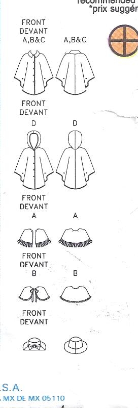 Butterick Pattern 3041 Cape Coat With Hood Hat And Cape Childrens Size 7 8 10 Sewing Pattern Heaven